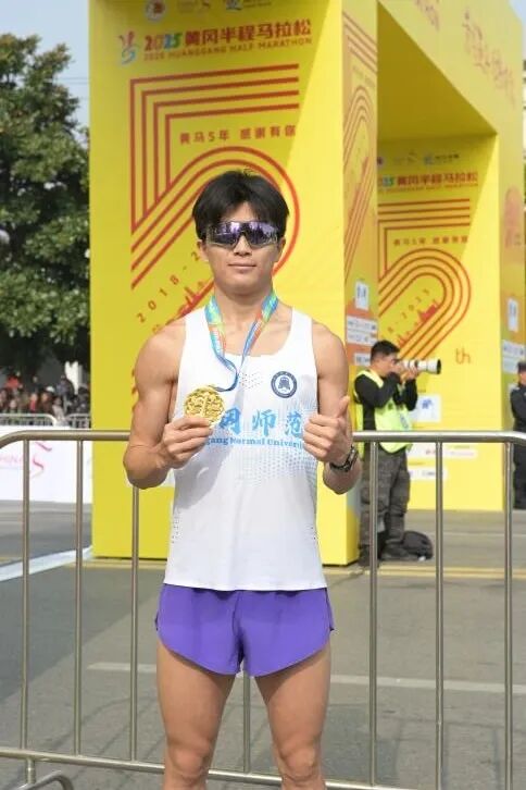 作为黄冈师范学院的学生,在家门口跑半马太有意义了。赛道串起遗爱湖的风光,路过黄梅戏大剧院时满是熟悉的城市印记,熟悉的风景给了我力量 。18公里时腿酸难忍,是补给站校友递水时的一句“黄师加油”让我重振精神 。冲线瞬间,奖牌在手,更懂“坚持”二字的重量。这场奔跑,是青春与城市的双向奔赴。