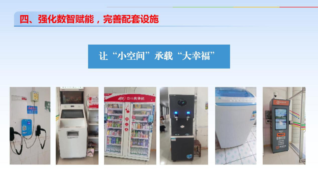 我校以“学生需求”为导向,通过引入市场化服务与数字化管理,破解传统公寓生活设施不足、服务效率低下的痛点,让“小空间”承载“大幸福”。