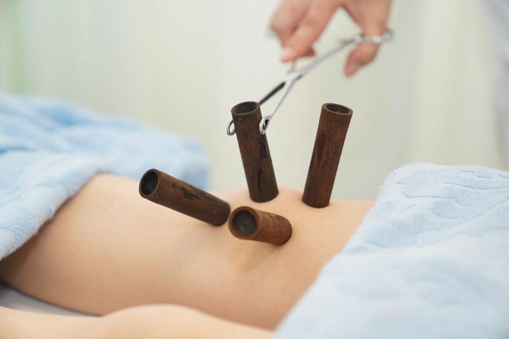 患者在广安门医院接受中药火灸技术治疗